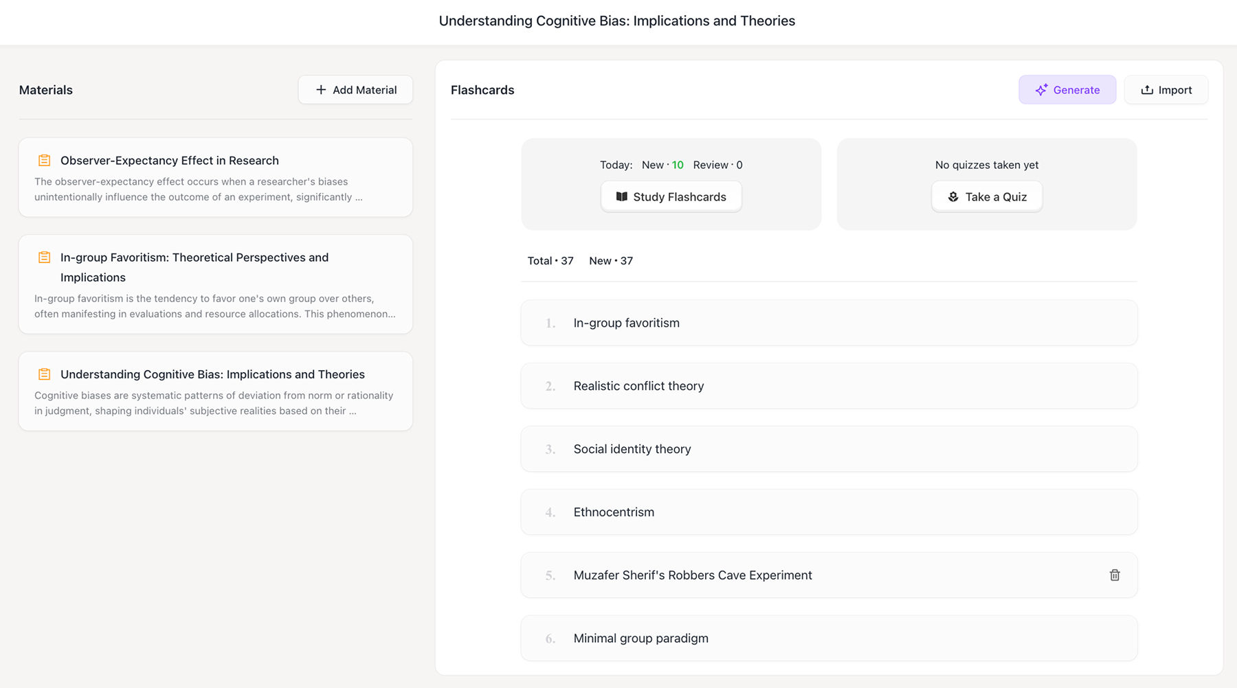 AI-powered learning: Turn your study materials into mind maps, flashcards, and quizzes — to learn faster and remember longer.